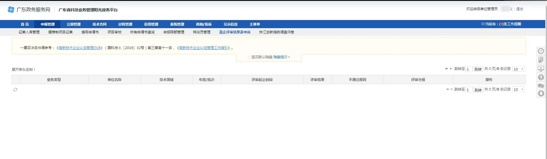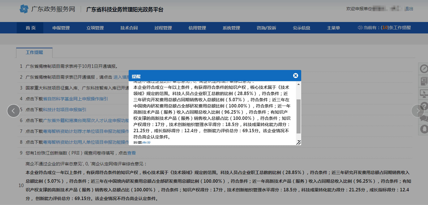 可通過(guò)【申報(bào)管理-項(xiàng)目申請(qǐng)-高企評(píng)審結(jié)果及申訴】查看