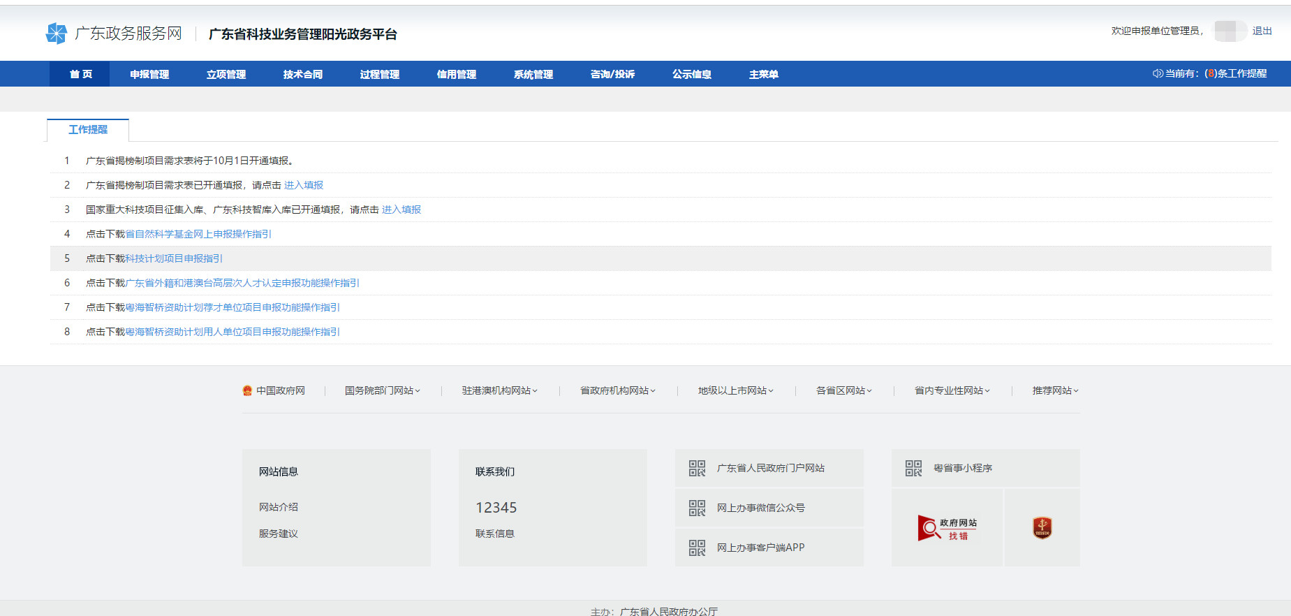 打開“廣東省科技業(yè)務(wù)管理陽(yáng)光政務(wù)平臺(tái)”網(wǎng)站:http://pro.gdstc.gov.cn/egrantweb/